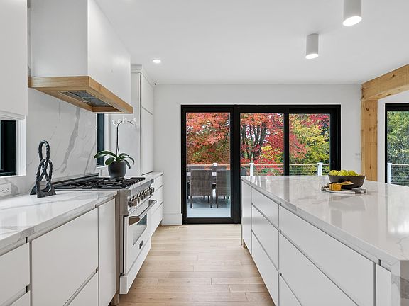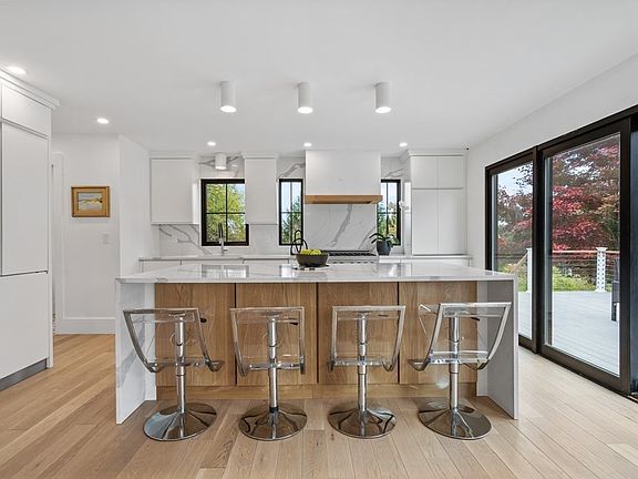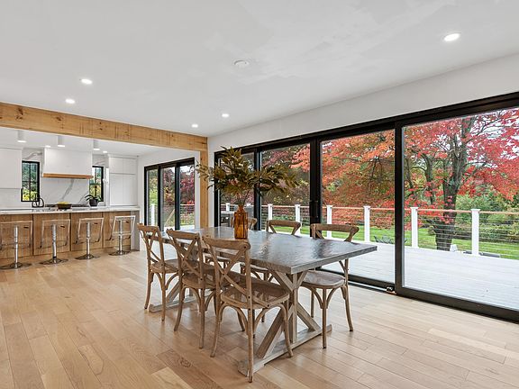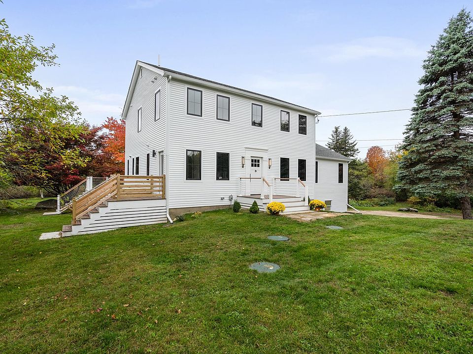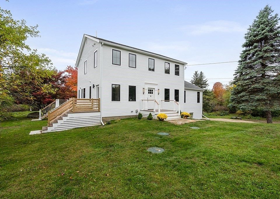 Located atop a beautiful 2.5 acre plot is a fully renovated 3 bedroom Colonial that brings a modern touch to classic New England home. A large and welcoming front porch leads to a classic center entrance with a mud area and adjacent office area that could also be used an extra bedroom. The hallway brings you to an open concept layout including kitchen, living room with vaulted ceilings, and dining all leading to rear deck. The kitchen boasts an oversized island with upscale appliances and quartz countertops with a spacious pantry and half bath. The upstairs encompasses a larger primary suite with a walk in closet and en-suite bathroom. Two additional generous sized bedrooms, a bathroom, and laundry round out the floor. Both bathrooms offer radiant heated floors and high end finishes. The large basement area leads right to the newly finished two car garage for ease of entry. This extensive two year top to bottom renovation on one of the best lots in town is something you want to see.