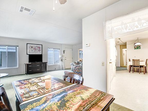 Welcome to your new home in the desirable Valle Vista Mobile Home Subdivision, a peaceful community thoughtfully designed for seniors. This charming 2-bedroom, 2-bath residence blends modern comforts with a warm, inviting atmosphere. Inside, a spacious living area flows seamlessly into the dining space, perfect for entertaining, while a cozy sitting area adjacent to the kitchen is ideal for casual meals, and enjoying morning coffee. The home features central heating and AC, recent exterior paint that enhances curb appeal, and dual pane windows for energy efficiency and quiet comfort. A flexible space sunroom, not included in the square footage, offers a bright retreat for relaxing, reading, or hobbies. This home is ready for you to transform it with your own personal style. Valle Vista is the only community residential park in Sonoma County where homeowners also own the land, and residents enjoy covered parking, a pool, scenic walking paths, and a well-appointed clubhouse through a modest monthly HOA fee. Shopping and excellent dining options are conveniently nearby!
