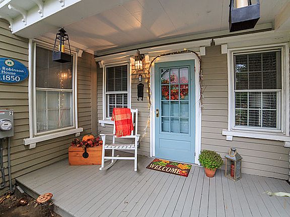 Charming cottage-like 2 level, 1 bedroom condo in The Trueworthy S.G. Robinson House, c.1850. Living/dining room with exposed brick chimney, hardwood floors and crown molding; kitchen with classic tile, gas range and dishwasher. Second floor with study area, bedroom with two closets and wide planked floors, bathroom with three skylights. Lovely covered front porch with lattice & surrounded by garden & plantings. Storage & laundry area in basement.