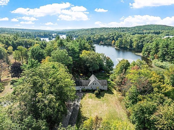 Waterfront access and breathtaking views of Whitmanville Reservoir from every waterfront window! This contemporary-style ranch offers flexibility with a 3-bedroom septic, allowing for future expansion. The open-concept living, dining, and kitchen areas feature cathedral ceilings, a full wall of windows, and a double-sided propane fireplace. Two bedrooms open to a deck with serene water views. The oversized 2-car garage—added just 5 years ago—includes front and rear doors. A loft with spiral staircase, and potential for a 3rd bedroom. Designed with accessibility in mind, the home includes a mudroom with laundry, a bath with walk-in shower, and a new handicap-access jetted sit-in tub with tile surround. Additional highlights: 4-year-old retaining wall, exterior hot tub plumbing, shed, new driveway, and three perennial gardens. Southern exposure offers solar potential. Ideally located just minutes from schools and the Westminster town line.