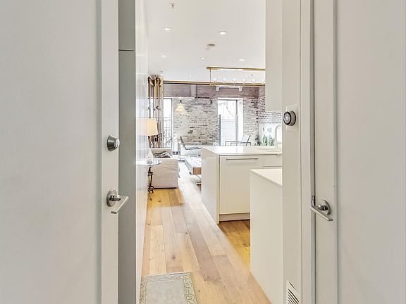 A Rare Offering in a Landmark Setting. Welcome to this extraordinary 2-bedroom, 3-bathroom townhouse an architectural masterpiece nestled within a converted 1914 Neo-Gothic church. Spread across four thoughtfully designed levels, this residence seamlessly combines historic character with refined modern living. Step inside and be captivated by soaring cathedral ceilings, original stone detailing, and expansive glass windows that bathe the interior in natural light. The open-concept main floor is a showstopper, featuring a chef-inspired kitchen complete with a Sub-Zero fridge and wine cooler, quartz countertops, gas stove, and custom cabinetry all set against a backdrop of preserved architectural elements. Enjoy seamless indoor-outdoor living with dramatic wall-to-wall folding doors leading to a covered patio outfitted with a stainless steel Wolf BBQ and gas fireplace perfect for entertaining or unwinding in style. The second level offers a beautifully integrated custom office, entertainment unit, and fireplace surrounded by rich wood finishes and bespoke built-ins, creating an inviting and functional living space. Upstairs, both bedrooms offer private retreats, each with a spa-like ensuite showcasing modern fixtures, marble accents, and walk-in showers. The primary suite is a true sanctuary, highlighted by vaulted ceilings and exposed beams that pay homage to the homes storied past. Additional features include heated floors, smart home technology, and private underground parking with a storage locker all the comforts of modern luxury within a one-of-a-kind historic setting. Offering a rare fusion of timeless elegance and sophisticated design, this remarkable townhouse invites you to own a piece of architectural history. Over $50,000 in Premium Upgrades, including a statement Restoration Hardware chandelier in the kitchen, custom built-in bookshelves with integrated office space, expansive custom closet cabinetry in both bedrooms, and a sleek outdoor gas fireplace
