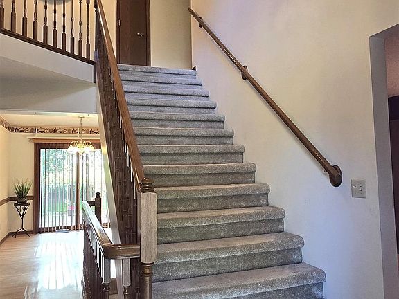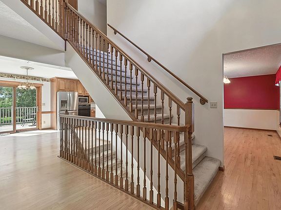 Beautiful one owner home in popular neighborhood! .89 acre, pleasantly rolling, park like lot. Enjoy the sounds of the nature & birds in your country setting. Home features spacious rooms throughout with a private office and built in library shelves and cabinetry. Pella replacement sliders to large deck. You'll enjoy the expansive eat-in kitchen with built in oven, lots of hickory cabinetry, breakfast bar/island with wooden countertop. Hardwood floors in the kitchen and dining room have been refinished! 5 full baths, two with whirlpool tubs! Front windows with built in stain glass. Basement finished with a possible 6th bedroom with egress window. Rec room is a walkout with daylight sliders, built in kitchenette/bar and wood fireplace. Don't forget the workshop with private door to patio. Patio & stone retaining wall was extended in 2023 to add a firepit for more outside living space. Too many amenities to mention!