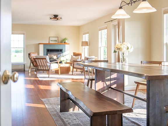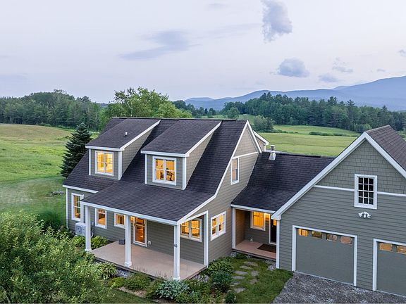 Better than new. All day sun. Big mountains view. Front porch Back porch. Mud room porch. Wide open floor plan. All high and dry. Gorgeous farmhouse with . . . bucolitude. Farmland setting. Sunsets. Coziness. Remarkable flow and circulation. Oversized insulated and drywalled 2-car garage with large storage space above. 1st floor laundry. Owned solar voltaic electrical panels. Split system A/C. Kitchen with new granite countertops and stainless appliances. New primary suite tiled shower with glass enclosure. Finished lower level with: luxurious spa-like bath with sauna, slipper tub, and large shower; guest space, and TV room. Huge fenced-in dog space. Freshly-painted exterior. VAST trails across road. Gather friends and family after that long hike, epic skijor gravel bike tour. Shuck corn on the porch with a cocktail as the sky blooms with the setting sun. Hunker down with a good movie after luxuriating in the spa and sauna. Wonder at the showcase of perennials. Come home to this.