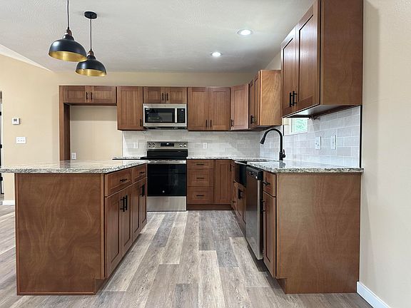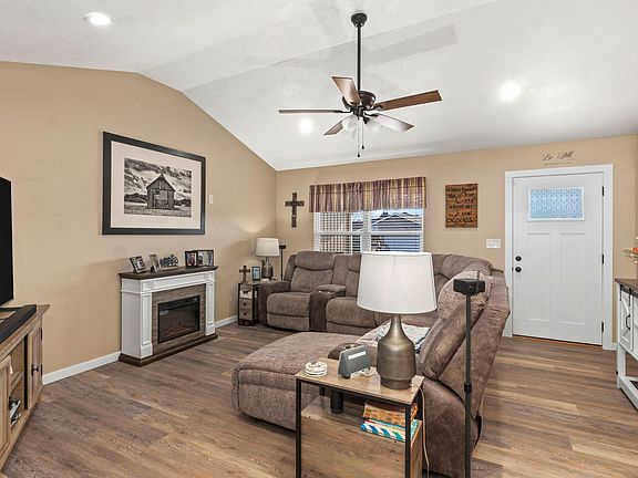 Welcome to 40 Whitley Lane, a move-in ready home with a thoughtfully designed layout and upscale finishes throughout. This home features a vaulted living room, 3 bedrooms, 2 bathrooms, and luxury vinyl plank flooring for a seamless, low-maintenance flow. The kitchen offers soft-close cabinetry, under-cabinet LED lighting, granite countertops, a tile backsplash, stainless steel appliances, an apron-front sink, and a spacious island with storage and seating. A large double-door pantry provides ample storage.The primary suite includes a walk-in closet and a private bath with a walk-in shower, double-sink granite vanity, and open linen shelving. Bathrooms feature comfort-height toilets. Additional highlights include a large laundry room with upper cabinets, generous secondary bedrooms, and a versatile storage area just inside the garage.Enjoy outdoor living on the covered back deck with ceiling fan, along with a covered front porch and a spacious 3-car garage. This well-appointed home truly checks all the boxes.