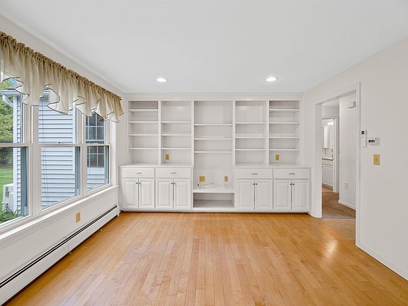 This exceptional stand alone condominium at Wildersburg Common is a rare find. With a wall of custom shelving and cabinetry, the bright living room has hardwood flooring and is adjacent to a delightful sunspace. The kitchen has maple cabinets, tile flooring and space for a table for two. Also on the main level a bedroom wing has a primary bedroom with it's own bath plus a second bedroom also with a private bath and study/home office. Finished two car garage is conveniently attached. Airconditioned with efficient heat pump. Central vac too. Downstairs a large rec room or workout space, a third bedroom, den with lots of storage and bathroom. On a carefully landscaped site maintained by the Association. Monthly HOA fee includes cost of trash removal, master insurance, snow removal and lawn maintenance.
