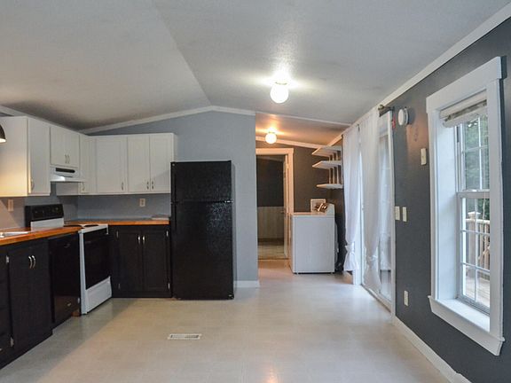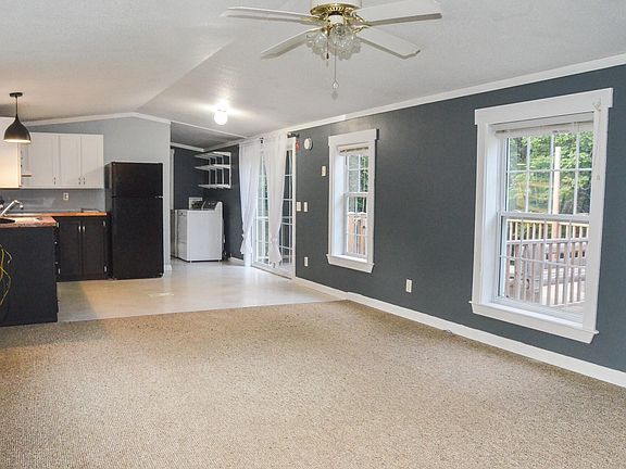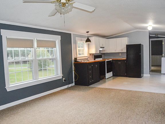 Countryside Single Wide on one acre, featuring a cozy two-bedroom, one-bath home. Enjoy the peaceful setting from the spacious back deck overlooking a well-maintained yard. The property also includes a two-bay garage with storage above, perfect for vehicle storage or hobbies. The home has new skirting, new roof on both the home and garage and new upper cabinets in kitchen. It has been sheetrocked in the living room and kitchen. Ideal for those seeking a rural lifestyle!