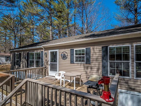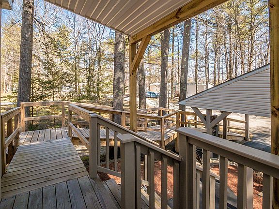 ONE OF THE MOST TRANQUIL LOTS IN THE PARK. Don't miss this opportunity. Three bedroom, two bath, lovely home with updates including all carpets replaced with vinyl plank flooring throughout, newer appliances, extension made to shed, new oil pump and motor for furnace in 2023, and a Jotul propane stove added in 2020, which operates without power. All skirting anchored to the pad in 2018, extremely sturdy! Seventy-five foot brick walk installed in 2021. There are three perennial flower gardens, that will blossom from spring into the fall. Asian pear trees, a cherry tree, and others planted in 2019. Don't forget the two car carport with pull-down storage above! This is a 55 and older community. Being offered partially furnished.