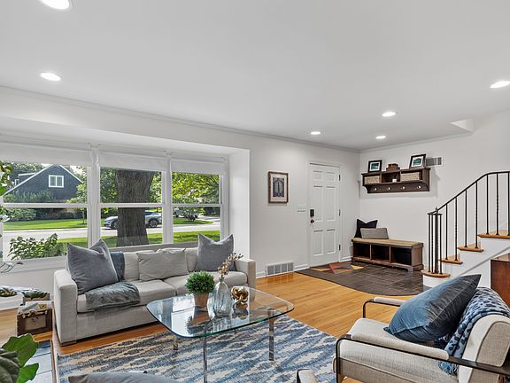Williamsburg Village of Evanston is a multigenerational community where neighbors become friends, and the sense of belonging is a way of life. It offers an unmatched experience anywhere on the North Shore. The "VILLAGE" has never been more desirable as a place to call home and raise your family. This offering at 40 Williamsburg is as special as this one way in...one way out...cul-de-sac subdivision...a true four bedroom up, two and half bathroom home...thoughtfully expanded and updated on a big, luscious lot. The gracious living room with decorative fireplace and south facing bay window welcomes you. There is a separate formal dining room. The chef's kitchen with all new stainless-steel appliances has full height painted wood cabinets, granite countertops & breakfast bar....opening to the informal dining area, family room & brick patio with gas firepit & handsome pergola. The spacious family room overlooks the park like yard through a wall of windows and features a gas fireplace flanked by bookcases. There is a highly desirable first floor office and large walk-in pantry just tucked off the kitchen/breakfast room. The mudroom and one car attached garage complete the first floor. The bedrooms flow up a gentle stairway. The second level hosts two big bedrooms and an updated hall bathroom. Up just a couple more steps you find a third family bedroom with vaulted ceilings and closet storage spaces that you will not believe. The vaulted ceilings, skylights and treetop views make this home's primary suite a true sanctuary. Luxurious bathroom with soaking tub, separate shower and double vanity and take note four walk in closets. The lower-level rec/play room is bathed in light. The adjoining full laundry room, half bath and miles of floored, carpeted crawl space provides organized, accessible storage galore. The home is served by Walker Elementary School, Chute Middle School, and Evanston Township High School, along with Village of Skokie municipal services. With a truly reasonable tax bill of $12,000, it truly does not get better than this...