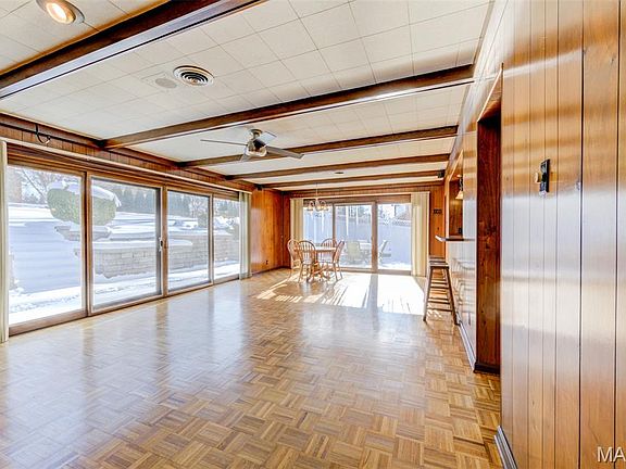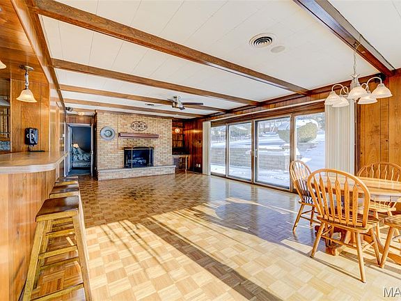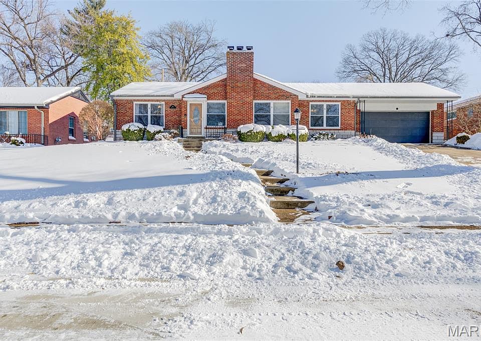 Showings begin Thursday 1/29! Open Saturday, 1/31, 1-3...Nestled in the sought-after St. Louis Hills Estates neighborhood, this lovely ranch home has charm, space, & versatility. Step into the sun drenched living & dining room combo with beautiful hardwood flooring. Opening to the kitchen where you will find stainless steel appliances and some updates. Flowing right into the large family room with cozy fireplace, big windows, and parquet flooring. The primary bedroom has an attached private full bathroom, two more bedrooms and another full bathroom complete the main level. Great patio and backyard. Ample parking out front, close to Willmore Park. A rare find...make it yours!