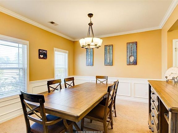 Lovely home in Alston Park! This 3 bedroom home offers flexible living space, complete with an office and bonus room. A gracious foyer entry with soaring ceiling, wainscoting w/new wood laminent floor in main living area. A formal dining room, enters to a bright kitchen with sunny breakfast nook. A new screened patio with full roof line overlooks the wooded preserve, and fenced yard w/brick paver patio. The master ensuite is spacious. Master bath has dual vanities, garden tub and shower. 2 HVAC AND a separate unit for the bonus room provide energy efficiency. Alston Park is located on the New Riverisde River bike trail, and so near the new May River School complex.