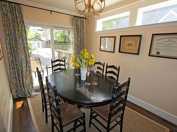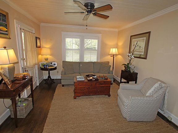 Charming Byrnes Down cottage with a unique floor plan. Main house consists of living room, dining room, kitchen, bedroom, bath and laundry. Second bedroom (currently used as a den) and second bath are in guest house in the beautiful fenced yard with deck and storage sheds.Guest house is included in the total square footage.