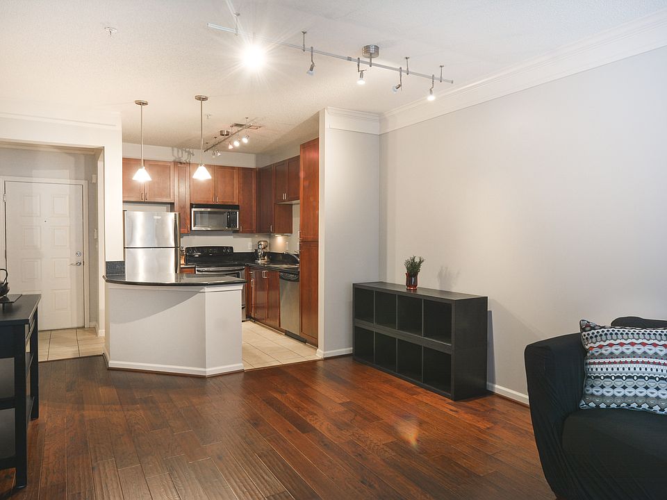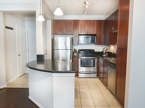 Sunny second floor condo w/open floor plan w/9' ceilings features all SS appliances, plus full size W/D included! Upgrades include: Nest thermostat & walk-in custom closet system. Atlantic Station at your doorstep, minutes from Arts Center MARTA, Midtown, Downtown and Buckhead. Pet friendly community with pool, fitness, grills, and assigned secure parking make this THE place to call home Intown!