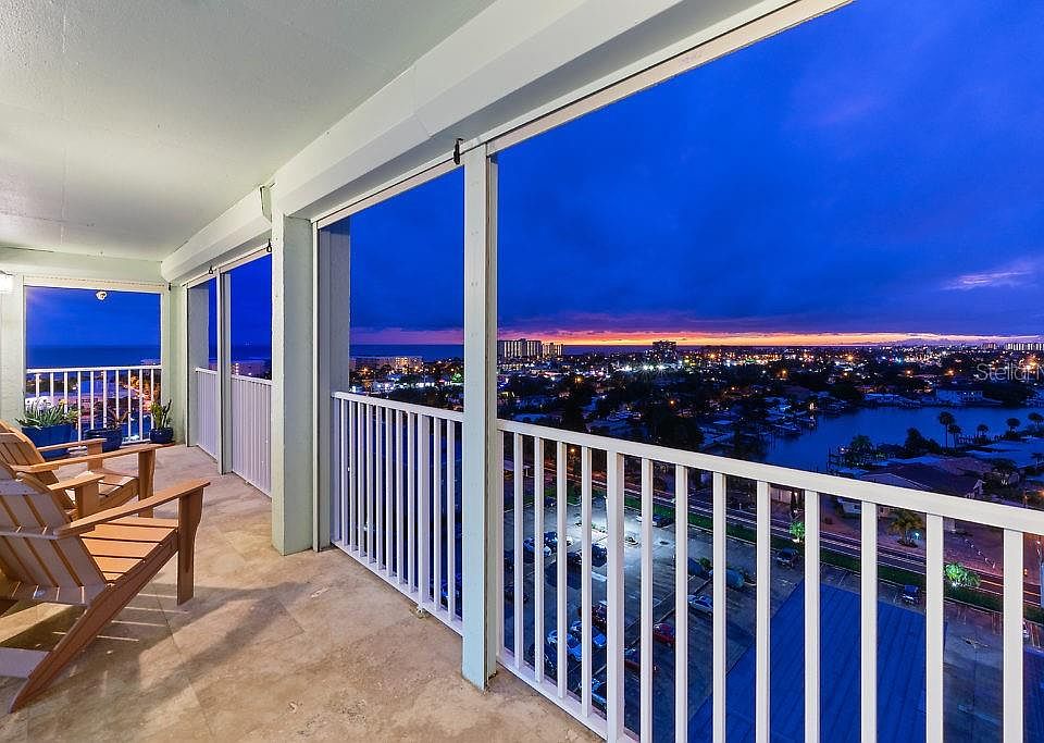 Three Palms Pointe Penthouse. Admire panoramic views of the Gulf of Mexico and Boca Ciega Bay from the northwest corner of this Iconic Beach Residence. This contemporary coastal home will take your breath away with its modern design and easy elegant style. The spacious open floorplan allows for water views from every room. Stunning granite counters hover above sleek white cabinetry in the well-appointed kitchen. Stainless steel appliances include Bosch convection oven/microwave, induction cooktop with vented hood, dishwasher and French door refrigerator. Over and Under cabinet lighting can be color controlled to set the tone. Open Concept Living and Dining Areas lead to the private balcony-offering flexibility for entertaining. The master suite enjoys wraparound water views, even from the custom walk-in closet. The master bath with his and hers vanities has separate tub and steam shower. The second suite has waterview, walk-in closet and ensuite bath. The third bedroom with sliders to the balcony can double as a home office or media room. The Penthouse has private interior laundry, no shared walls with any other residence, secure storage and covered parking. Total transformation includes impact glass windows and doors, flooring throughout, flat finish walls and ceilings, upgraded electric and plumbing. Just a few blocks to the beach, amenities include guardhouse entry, 24-hour security, heated pool, club room, billiards, fitness, sauna, shuffleboard, bicycle and kayak storage, fishing pier and boat slips (by reservation).As of December, there are several boat slips available.
