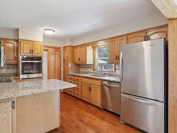 Gorgeous custom rambler on large corner lot in prime location. Beautifully updated throughout including raised panel oak kitchen cabinetry w/granite countertops, custom tile backsplash and stainless steel appliances. Solid hardwood floors on main level with updated primary bath with convenient main level laundry and spacious walk in closet. Open concept main level with custom built in cabinetry in the living room and walk out to the backyard right off the kitchen. Spacious oversized, heated garage plus an amazing backyard with extra storage shed and a convenient screened porch make this a perfect space for entertaining. Peace of mind updates include a brand new architectural shingle roof, newer windows and low maintenance siding. Huge lower level with bar, rec room and an additional bedroom and bathroom make for the perfect space for entertaining. Don't miss this great opportunity!