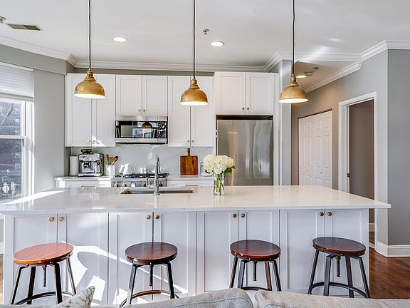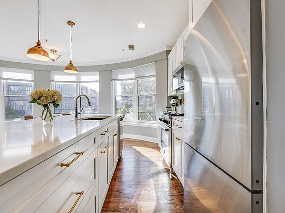 Rarely available, impeccably renovated, sun-drenched corner unit featuring extra large rotunda living area facing South and East, and desirable butterfly layout in the highly coveted Columbus Building, located in the heart of Hoboken. Step into the sprawling open-concept living area with room for living and dining, tons of windows and natural light and views of Hoboken, with recently renovated open kitchen, presenting gorgeous quartz countertops and backsplash, 10-foot island with cabinetry on both front and back, breakfast bar and upgraded stainless steel appliances, and fixtures. The expansive primary bedroom features wall-to-wall windows, 2 large closets and en-suite bathroom with enclosed standing glass shower. Sizeable second bedroom is quiet and flooded with natural light, boasting a large closet. The second full bathroom boasts a soaking tub. Additional features include hardwood flooring throughout, 18 oversized Pella windows, an abundance of closet space, central AC, in-unit front-load washer/dryer, recessed lighting, ceiling fans, custom window treatments, crown molding, NEST thermostat and one deeded full-size, easily accessible, prime parking spot. The Columbus is a well maintained, six story elevator building with 87 residences. Amenities include a gym and landscaped courtyard. Located adjacent to Columbus Square Park, a convenient distance to Shop Rite and Trader Joe's, just one block to the NJ Transit express bus that services New York City's Port Authority, two blocks to the bus that services Hoboken Terminal (PATH, Ferry, Light Rail, NJ Transit), four blocks to the 9th Street Light Rail Station, and an easy walk to the NY Waterway Ferry at 14th Street, Hudson River Waterfront Walkway, along with an array of boutique shopping and dining that make Hoboken so special.