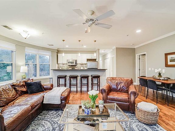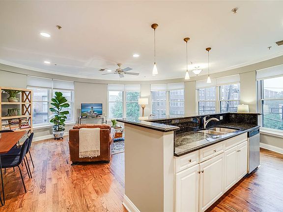Welcome to The Columbus! This large sun-filled 1245 sq. ft., 2 bed-2 full bath corner unit is one of the most expansive layouts in the building with an extra-large rotunda living room facing South and East. This open concept living, kitchen, and dining is an entertainer's dream, and don't forget about the oversized 18 Pella windows. The gourmet kitchen with stainless steel appliances and an oversized granite breakfast bar island. The master bedroom is large enough to include a sitting area and or home office and a sizable second bedroom. Two fully renovated luxurious bathrooms. The home includes hardwood floors throughout, crown molding, Nest Thermostat, ceiling fans, central A/C & Heat, full size washer and dryer and tons of storage. Professionally managed elevator building with landscaped courtyard and gym. Neighboring Columbus park offers playgrounds, splash pads, tennis courts, and green space. Just steps away from buses into NYC, 3 blocks to the light rail, and easy access to the Hoboken Path.