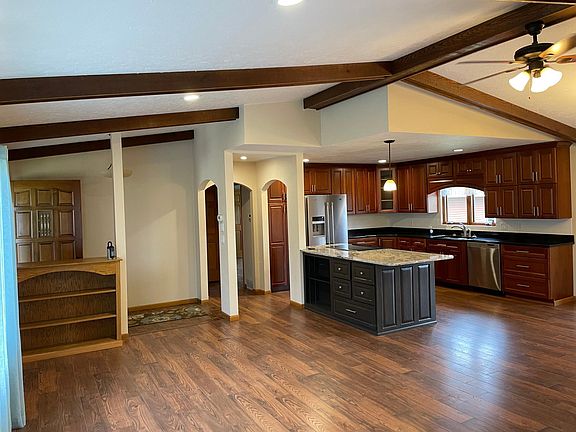 This Beautiful One Level home features updated Kitchen & appliances with Granite Counter tops, Open Kitchen, Dining & Large Living area, All with 3 Bedrooms, 2 Bathrooms with Tile Walk-in Showers and Jetted tub for your relaxing, Fireplace and main floor Laundry, Deck & Patio, Front covered Entry, Complete with Attached 22x22 Garage, a 24x24 heated Garage, a 24x32 Garage & a storage shed, All Situated on a Great Large City Corner lot, It's a MUST SEE!!