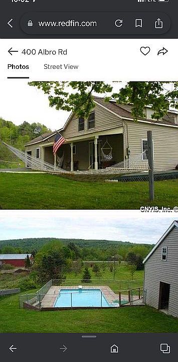 Let this country road take you home to the place where you belong...400 Albro Road. This home hits all the right buttons; over an acre of beautifully landscaped land, incredible views, in-ground swimming pool, plenty of full lush trees to keep you hidden from the world, 4 nice-sized bedrooms, gorgeous new hardwood floors, a large eat-in country kitchen, and a full-length front porch to sit and enjoy on those lazy summer evenings. Now add to that an attached garage, an additional room off the garage that is currently being used as a gym, a huge shed at the back of the home by the pool, and an additional room off the kitchen that could be a first-floor bedroom, playroom, or whatever you dreamed of having in your new home. Come check out this adorable country home that won't break the bank but hits all YOUR buttons!