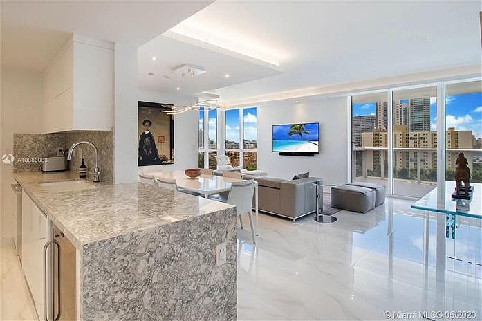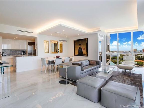 An upscale, fully-renovated corner apartment at the Murano Grande in South Beach. This two bedroom apartment has 1548 sqft of living space, and a large private terrace. It's a corner apartment with views of the bay, pool area and ocean in the distance. Some of the upgrades include stunning white catacalla porcelain floors, linear air diffusers, cove lighting and kitchen counters and surfaces. Bathrooms include Toto Neorest units and all new fixtures and cabinets. Murano Grande is located in the South of Fifth (SOFI) district of Miami Beach, and sits next to a Publix supermarket, Total Wine, plus just blocks from Joe's Stone Crabs, Prime 112 and other famous Miami dining and entertainment venues.