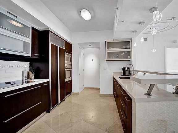 Beautifully renovated and furnished 2bed/2 bath at the ever popular Murano Grande. This apartment has been completed upgraded with the best of finishes. Kitchen has Sub Zero refrigerator, Miele oven, Jenn-Air induction cooktop, double Blanco deep sinks and touch faucet, custom pullout pantry. Baths have floor to ceiling marble, Duravit appliances, & Stark fixtures. Unit also has a built in entertainment system, full size LG washer and dryer, great design features and more. Murano Grande is known for its excellent service, management, amenities and views. Marina, park and many of Miami's best restaurants right outside your door. Available March 1st, Turnkey, No Pets.