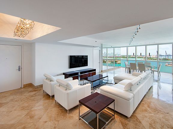 A superb waterfront apartment at the MURANO GRANDE in South Beach. The 01-line is a spacious, all-glass two bedroom apartment directly over the Miami Beach marina. It has stunning bay and skyline views. This apartment is immaculate, and feels brand new. Enjoy generous light from its floor-to-ceiling glass windows, which also feature motorized blinds. You will marvel at this apartment as soon as you walk in, and it is one of the nicest apartments for sale in South Beach, located in the famous SoFi district. Murano Grande is a full service building with 24 hour front desk and security services, 24 hour valet parking, a pool, tennis court, world-class gym and onsite restaurant. All of South Beach's restaurants and entertainment venues are nearby, and easily accessible.