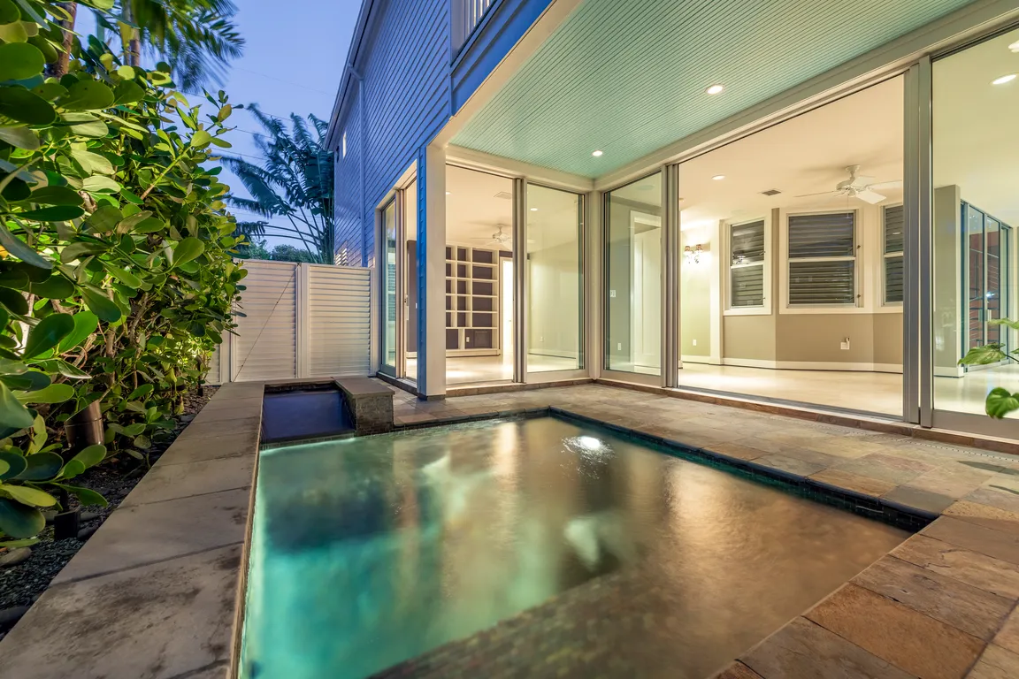 Tropical poolside oasisLarge granite islandPrivate covered porchSpa-like bathroomAiry loungeMarble finishesCovered patio