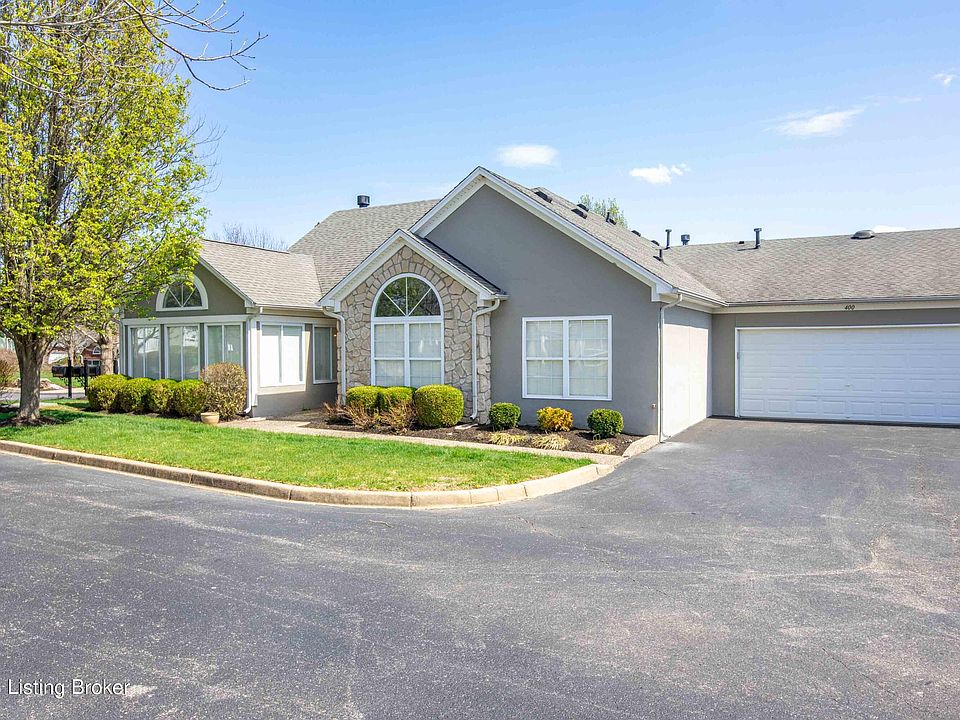 Welcome home to 400 Baines Way! You will love this 2 bedroom, 2 bath home featuring vaulted ceilings, new carpet, new stainless steel appliances, a gas fireplace, and an all-season sunroom. This gorgeous home has been meticulously maintained. The primary bedroom comfortably fits a king-size bed and features an en-suite bathroom with a large walk-in closet. Enjoy summers relaxing by the pool and take advantage of the clubhouse and fitness center year round. Don't miss the opportunity to live in this low-maintenance community! Conveniently located close to shopping and restaurants. All appliances remain! Call today for your private showing!