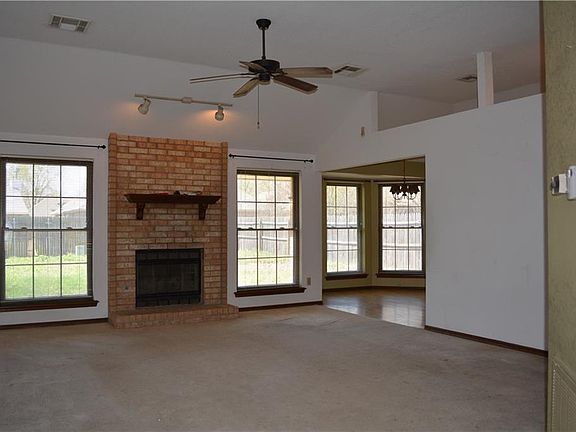 Great floorplan on a very large, corner lot in the sought after CAMBRIDGE neighborhood. This home offers 3 bedrooms and 2 bathrooms. The master bedroom boasts of a ceiling fan, walk-in closet and a full bathroom with double vanities, garden tub and separate shower. Enjoy the gas log fireplace in the open living room. The kitchen boasts of stainless steel appliances which include electric range, built-in microwave and refrigerator. The pantry adds extra storage in the kitchen. The secondary bedrooms are spacious. The utility closet is centrally located. The washer and dryer will remain with the property. This home is to be sold AS-IS. Appears to only need some cosmetic updating and TLC to make this home even more desirable. Taxes have been estimated.