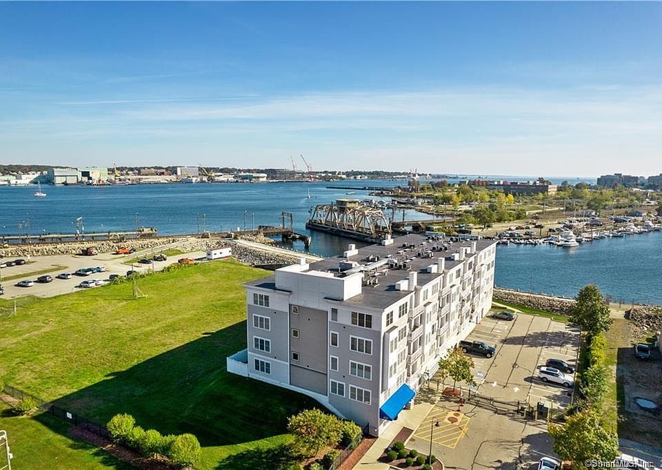 Shaw's landing- one of a kind condo w/ water views of Thames River, located in the heart of the New London harbor area! Shows pristine! Unit is located on the first floor, w/ gym & media room close by. Hardwood floors through out except in the bedrooms. Light filled open floor plan- Kitchen w/ granite counters and eat at bar opens to the great room w/ living and dining rooms. Both rooms are accessible to the fenced yard with patio and flower gardens w/ direct access thru gate to common area and walkway down to the river. Unit was a 3 bedroom but now is a 2 bedroom w/ 2 full baths. Primary bedroom with new large walk-in shower and walk in closet. One garage spot for parking & additional gated parking outside. Conveniently located, walk to downtown! Minutes to Ocean Beach, and easy access to train station, Ferry, and I-95!