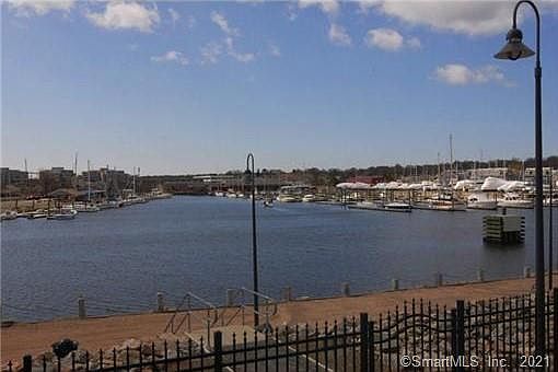 Enjoy an easy lifestyle in this 1 bedroom, 1 bath condo with an open floor plan, granite KIT open to LR & DIN and wood floors throughout. This waterfront complex includes a secure gated 4 story building with views of Thames River & marina, theater, train station and even ferries. Amenities include a community room w/kitchen & patio, gym with TV & sauna & baths, 70 sf balcony with water views. The location has great access to trains & ferries and is centered between Boston and New York.