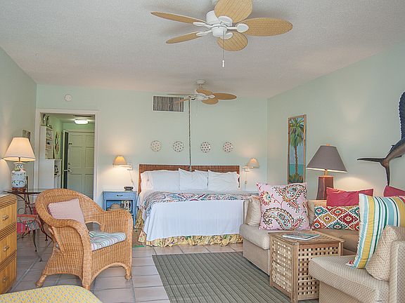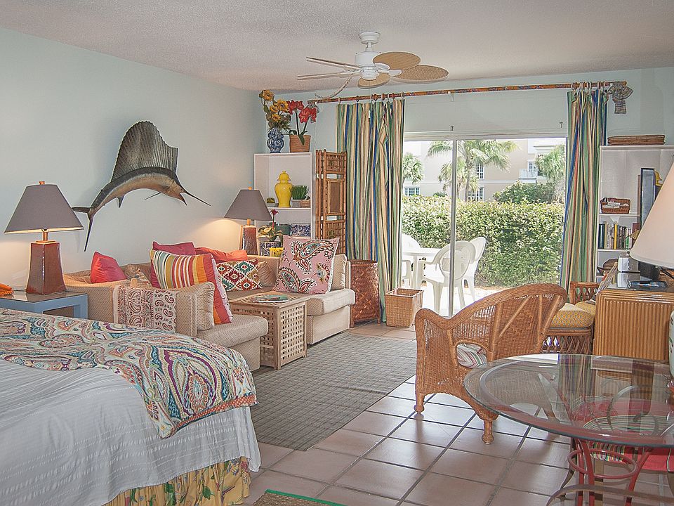 Conveniently located next to the Beach Club and all Club amenities is this beautiful 1BR/1BA studio efficiency. Offered fully furnished, this 590+/- SF residence enjoys soothing tropical breezes, desirable southern oceanside views, covered patio, kitchenette for light cooking, full bathroom, large walk-in closet and direct beach access. The two-story Island House is designed in an atrium fashion to wrap beautifully around a private, tropically landscaped courtyard with pool. Great rental potential!