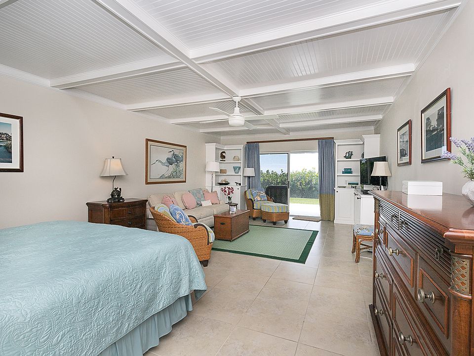 Conveniently located next to the Beach Club and all club amenities is this beautifully updated and fully furnished 1BR/1BA, oceanfront studio efficiency. Showcasing outstanding, panoramic, ocean views, this 590+/- SF residence affords breathtaking sunrises and tropical ocean breezes from the spacious covered patio. Additional features include custom millwork and built-ins, kitchenette with dishwasher, laundry room with washer/dryer, full-size refrigerator & ample storage, private courtyard pool and beach access.