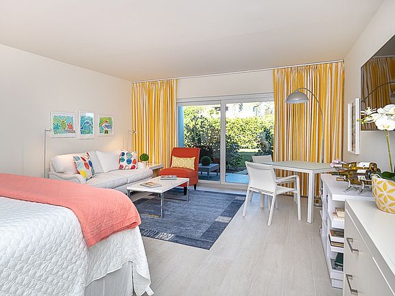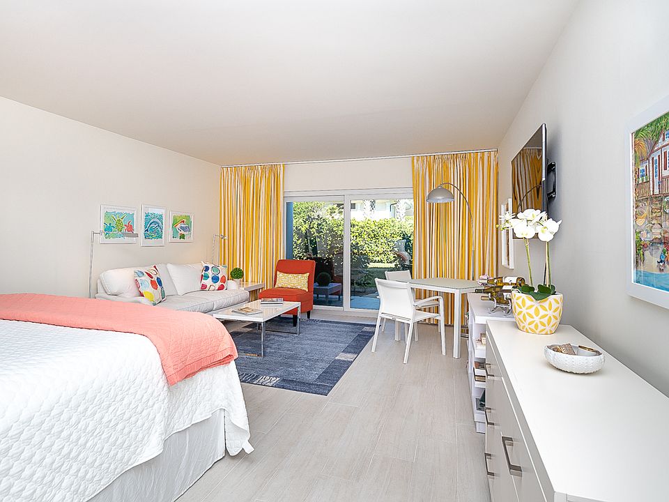 Located on the first floor of the Island House conveniently next to the Beach Club, is this beautifully updated, fully furnished 1BR/1BA studio efficiency. Indulge in tropical ocean breezes from this 590+/- residence with covered terrace showcasing blended views of distant oceanside views, lush foliage, and the Beach Club. Unique to the Island House, this unit has a full kitchen with ample storage and also hosts a bathroom with glass walk-in shower, spacious closet, washer/dryer, courtyard pool and private beach access.