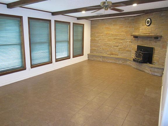 Way out in the country on 128-acre working cattle ranch. 15-mile hilltop views. 2-car garage, 2-car carport, and 30x60 shop building with heavy power. Fast internet great for remote work. Tile in all living areas and bathrooms, carpet in bedrooms. Large master bedroom with bath and two closets. One other large bedroom and two smaller ones. Living room has wood-burning stove if you're feeling close to nature; central A/C and heat pump otherwise. Laundry room. Near Muenster school district. Can have cows and horses. Plenty of room for large garden. "Front yard" is a 30-acre hayfield. 3 miles from Forestburg school, 1.5 hours from Metroplex. Hunting and fishing rights available for extra on adjacent 150 acres. Tenant responsible for electricity and garbage service. No water or sewer fees. Pets OK, cows and horses $30 extra each per month (landlord provides pasture year-round and hay in the winter).