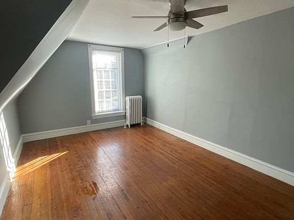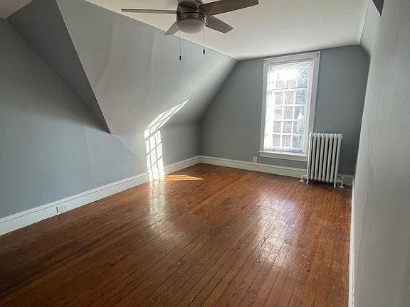 This 3rd-floor 3-BD unit has recently been renovated. As you enter, 2 BDs face the front of the house, each with new carpeting & ceiling fans. The intriguing turret BD has 4 windows providing panoramic views of the neighborhood, while the other BD has a beautiful set of 3 windows overlooking the front of the building. The living room is complete with original hardwood flooring & a ceiling fan. Adjacent, is the 3rd bedroom, also carpeted. Toward the rear of the unit, you will find the newly renovated kitchen, complete with quartz counters and stainless steel appliances, as well as a renovated bathroom. Tenants pay for electricity, cooking gas, and Xfinity. 2 parking spots are included. No smoking or pets. The dedicated laundry for this unit is located on the ground floor of the building.