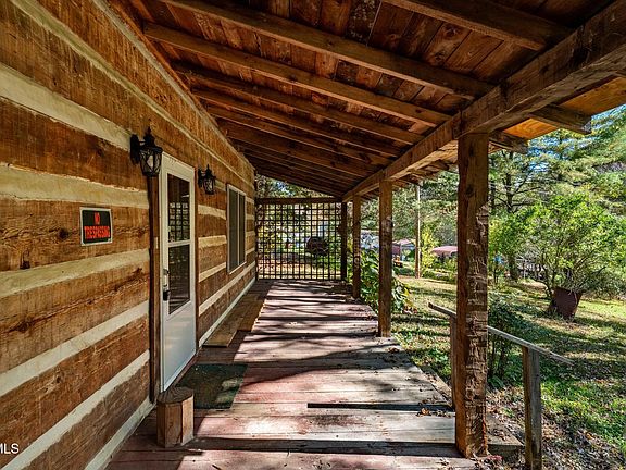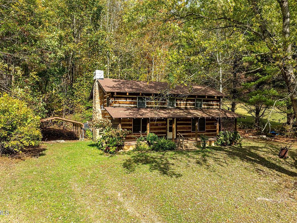 Log cabin situated in a private setting with loads of potential and only minutes from many area attractions and amenities! New roof, plumbing, flooring, counter tops, cabinets, hot water heater, and more mean that you have a great start towards a move in ready house with many of the improvements already completed! Gorgeous stone wood burning fireplace adds to that rustic mountain cabin feel. Spacious covered front porch to relax and rock your cares away. Large yard is usable and great for pets with a carport and storage shed on the property. Located just minutes from all of the amenities of Mountain City, and a short drive from outdoor adventure such as the Doe Mountain Recreation Area, Watauga Lake, Creeper Trail, and fantastic motorcycling or biking on the world-renowned Snake. Additional 5.5 acre tract can be purchased along with the home for gardening, livestock, or an additional home. Don't miss your opportunity to turn this into the mountain cabin of your dreams, come and see today! Home is being sold as-is.