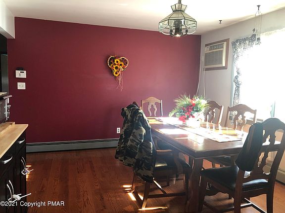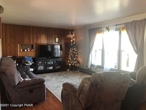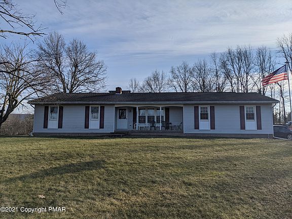 3 bedroom, 1.5 bath cozy ranch on nearly 3 acres in desirable Hamilton Township and Stroudsburg School District. Newer hardwood floors throughout and a large enclosed porch/sun room. Full unfinished basement, built-in 2 car garage and 3 detached garages. Efficient oil heat with hot water baseboard. Quiet country living with lots of land and a great location!