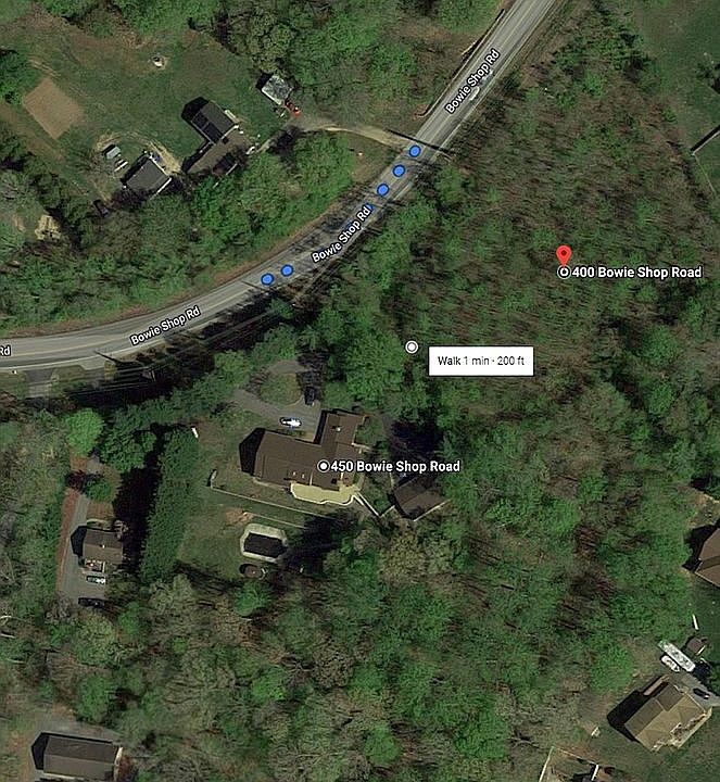 This 3.2 acre wooded lot is mostly level, and has an approved perc test. Immediately adjacent to parent estate (450 Bowie Shop Rd).