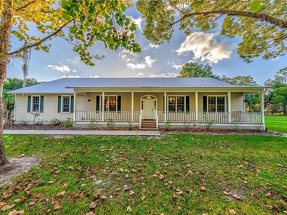 WOW! Your going to be impressed by this beauty on almost 9 FULLY FENCED acres! Enter your new home through the electric coded gate and then enjoy the winding PAVED ASPHALT DRIVEWAY all the way to the house which comes from the paved road! This POOL home boosts 3 bedrooms 2.5 baths with multiple opportunities for additional bedrooms if needed. Granite through out the kitchen, and perfect oak hardwood floors to match the farm house feel! You'll love the look this metal roof provides! This home has everything needed inside and out for its new owners! Luxurious SALT WATER HEATED pool with spa is surrounded in brick pavers. Plenty of patio space to watch friends and family swim! Enjoy entertaining family and friends under your custom covered patio. Whole home generator included and will bring peace of mind during the Florida storms! Bring your toys and store them in the large pole barn! The play house stays and the custom made sandbox! Close to Oviedo. Schedule your appointment today before this one is gone!