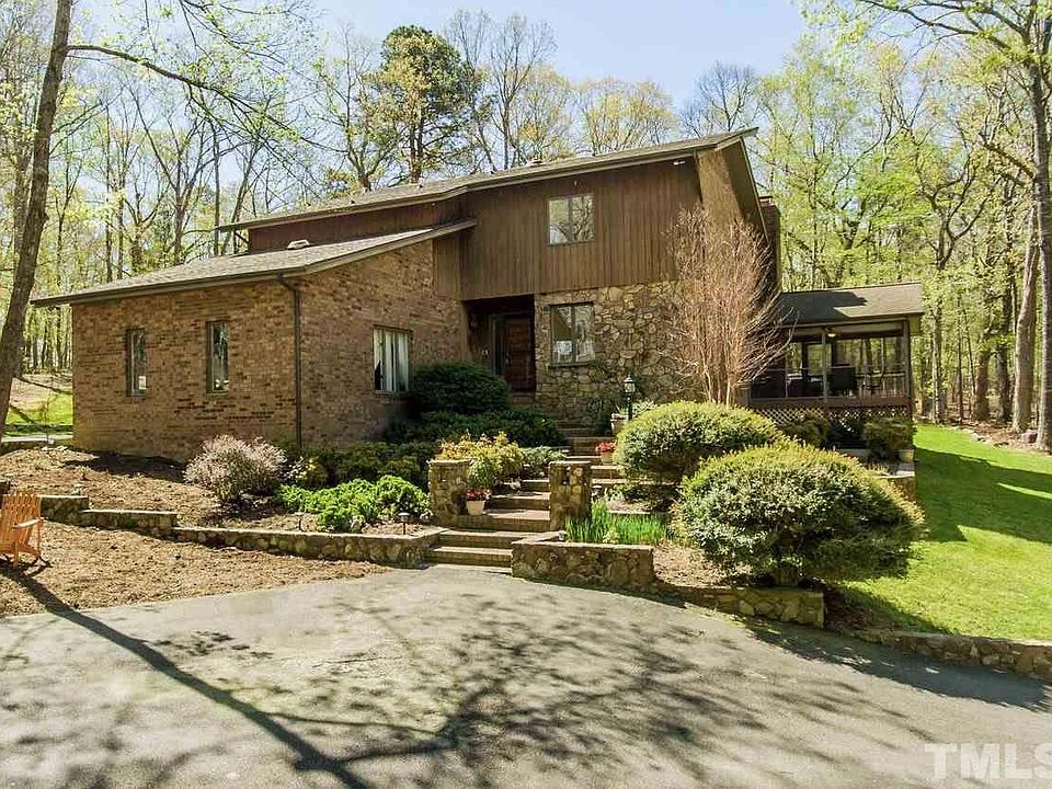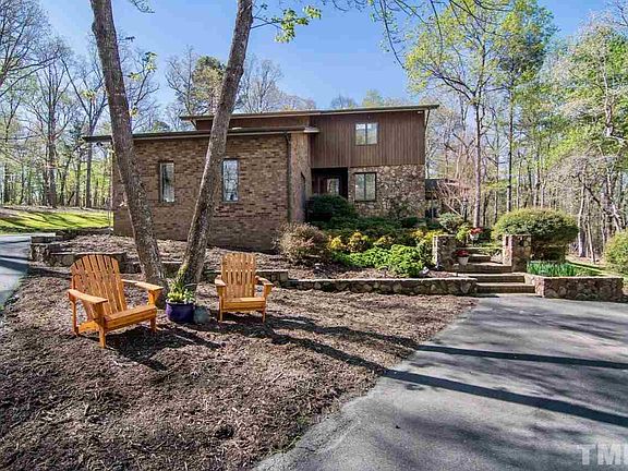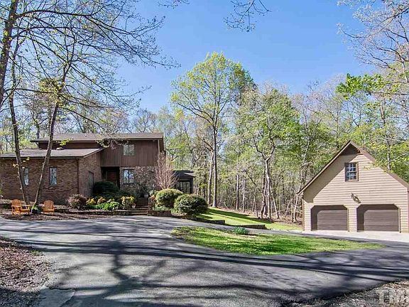 Beautiful home situated on 6.7 acres boasts 3 bedrooms plus a basement suite w/ full bath & separate entrance. Cathedral ceilings, updated kitchen w/ granite counters, SS appliances and gas cooktop. 3 season sunroom, screened in porch & large deck. Attached 2 car garage and a large 2 car detached shop with finished room above. Lovely stone work inside and out, landscaping & walking trails. Newer HVAC, new water purification system, newly painted throughout. Chapel Hill schools & minutes from CH/Carrboro.