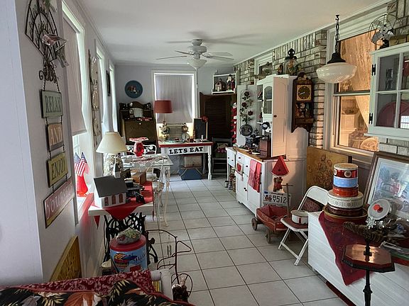 This home offers 1256 square feet of Living are. There are Two Bedrooms with the possibility of four. There is one and a half bathrooms. Included is a Family room, Living room-Dining room-Kitchen combination. There are 10 ceiling fans throughout the home. The fireplace has a gas insert and is an effective heating source. Fold-out windows are installed throughout the home. Attached to back of home is a former Workshop, 18 x 20, that could be transformed into an apartment, man cave, etc. There is a one-car garage and a detached metal carport and a utility building in the back yard. The bright front porch is 17 x 8 and full of windows. The entire home has Ceramic flooring. Included is an outside Generator when electricity goes out. This home has an established yard including trees. This home is "steps" away from the baseball park and is located on a street with only one way in or out.