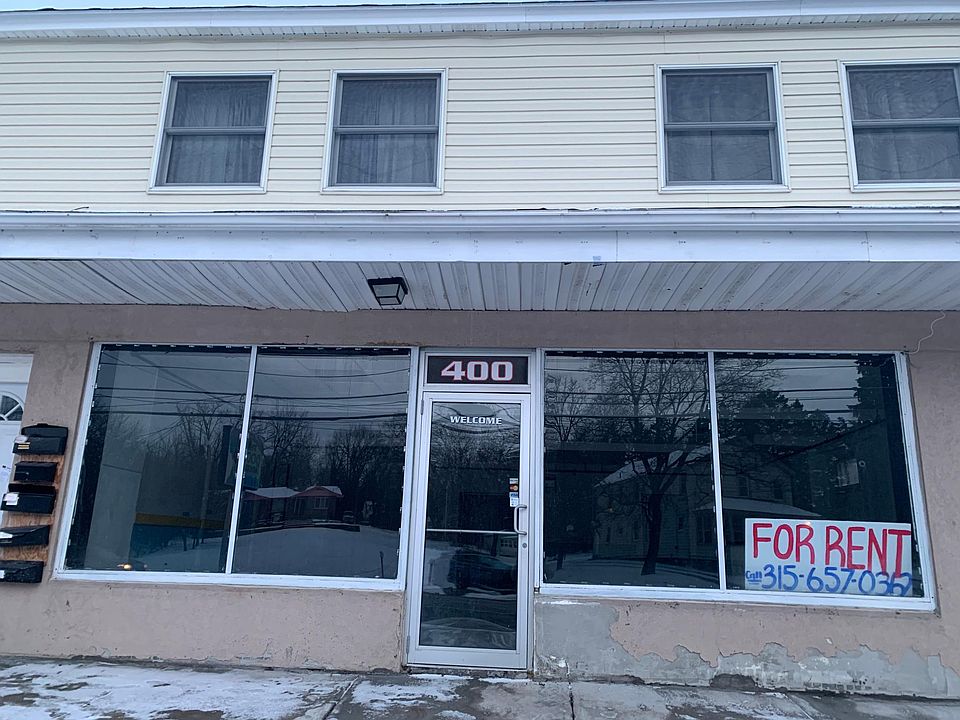 FRONT RETAIL/COMMERCIAL SPACE FOR RENT. Big windows, parking for customers, corner lot on major road in Liverpool.