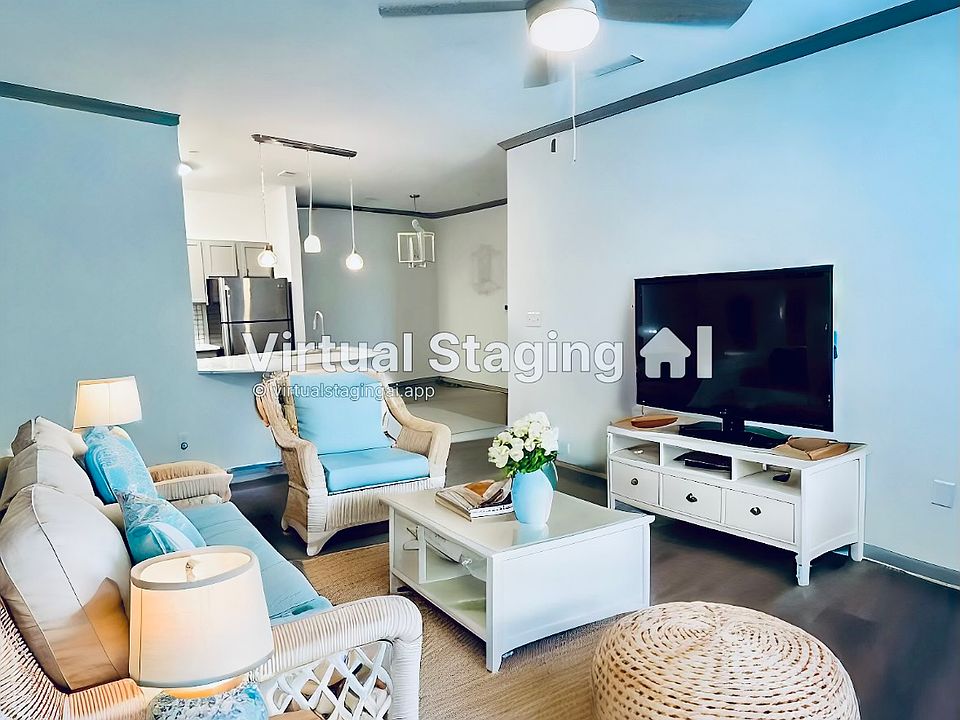Beautifully renovated, first floor 2 bedroom Daniel Island condo for rent! Restaurants, shops, Publix and concert stadium are all just a short walk, bike or golf cart ride away! The beautiful kitchen features quartz countertops and an overhang for barstool seating, separate dining nook and stainless steel appliances. The bath includes large tub with tile surround and upgraded rain shower head, a double sink vanity with shiplap back splash. Screened in porch with separate storage space for bikes, beach chairs etc. Living room and bedroom TV's are included as well as washer/dryer. Amenities include beautiful pool across from unit and 24 hour gym. Pets acceptable with pet deposit of $150.00 per pet.