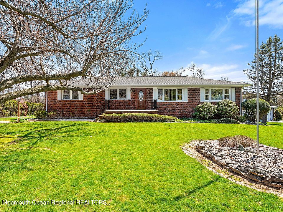 East Freehold charming, 4 sided brick Ranch situated on almost an acre of land. Home features a newer kitchen with granite counters, custom cabinets and stainless appliances. Sunken family room with woodstove fireplace, hearth, radiant heat flooring and built in speakers. Enjoy a full finished, walk out basement featuring tile flooring, family room and ½ bath. Primary bedroom with updated private bath. Additional amenities include gleaming hardwood floors, hot water baseboard heat and walking distance to Elementary School. Close to Route 18 access and the Colts Neck border. Excellent Freehold Township School system.