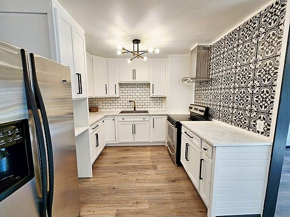 ~ ADORABLE HOME, TOTALLY REMODELED ~ CORNER LOT ~ NEW FLOORING, PAINT, APPLIANCES, BATHROOM, WINDOWS, WASHER & DRYER ~ Beautiful 3-bedroom 1 bath home sitting on .34 acre corner lot that is fenced in! Designer Kitchen complete with NEW CABINETS, COUNTER TOPS & SINK, STAINLESS APPLIANCES, SUBWAY TILE BACKSPLASH, UNDER COUNTER LIGHTING! Spacious living room with picture window! The primary bedroom has a large walk-in closet! The two additional bedrooms are large and have ample closet space! Super laundry room that has cabinets, a sink and extra storage space and includes the washer and dryer! The Electrical in the house has all been redone! New interior and exterior lighting! New water heater! Outside boasts a carport, large fenced yard, wonderful covered back porch so you can enjoy the weather and new HVAC unit! Come on and view this like new home, you will LOVE it the minute you walk through the door!