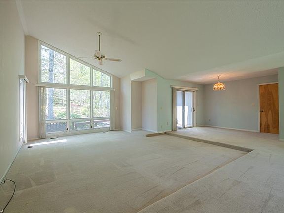 Step into this well maintained one-level contemporary home offering a unique and inviting layout. The sunken living room adds architectural interest and a cozy ambiance, perfect for relaxing or entertaining. A separate den provides flexible space for endless possibilities. The large primary bedroom offers a walk-in closet and en-suite bathroom providing tons of natural light. Downstairs, the unfinished basement has incredible potential - already plumbed with a toilet and sink - ready for your custom touches. Whether you're looking to expand your living space, create a guest suite, or design a dream workshop, this blank canvas awaits your vision. Outside, enjoy your mornings on the expansive two tiered deck overlooking a waterfall feature in the backyard. Roof replaced 2 years ago. Refrigerator, washer, dryer to remain.