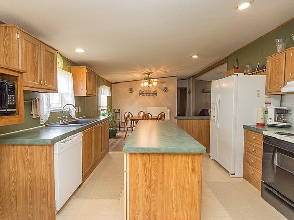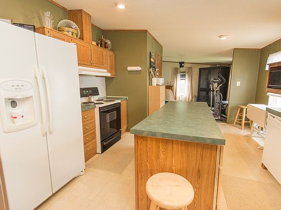 Very nice well maintained manufactured home plenty of room with open floor plan. Fully equipped kitchen w/island and pantry. 3 off street parking spaces, a shed to house lawn equipment, covered porch and additional deck. land lease is $250 per month and includes water, sewage and garbage. The home can be moved to another location