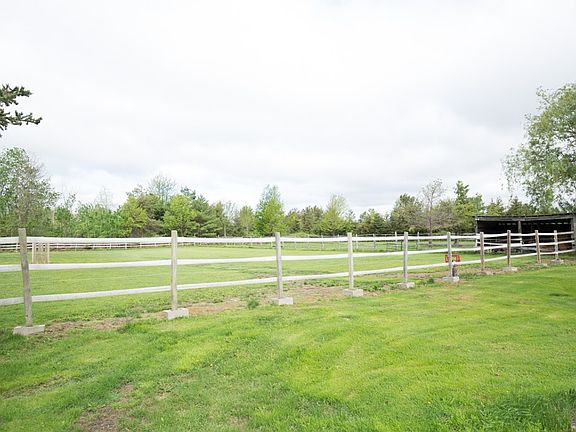 Equine Horse Lovers Dream! Why board when you can bring your horses home....This 3 bedroom, 2 bath home sits on over 7 acres. Home features HWflrs., FR, LR w/pellet stove, full basement, eat-in country kitchen, 2 car garage and more. The 4 stall barn features rubber mats, water and electric, plus a front door and added rear entry door to paddock. Separate Hay barn. The three large paddocks have lights and electric fencing for your riding enjoyment. This property is perfect for the animal lover in you!