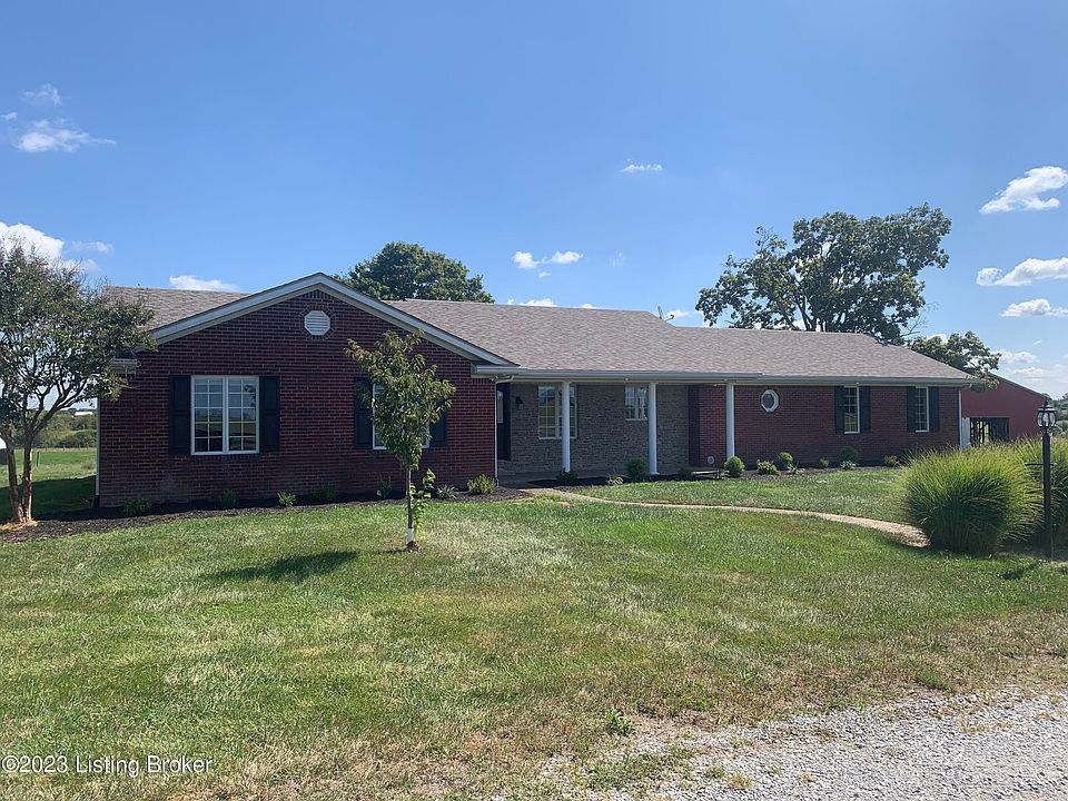Welcome to the country folks and bring the animals with you when you come! Built in 1990 this 3 bedroom, 3 full bath brick ranch offers 1700' sq feet of finished space on the first floor and an additional 1700' sq feet in the unfinished basement. 2 car attached garage, geothermal heat and air, central vac system, new roof in 2023', 32' x 72' enclosed hoop barn for equipment/hay storage, 50' x 60' barn with loft area and city water hydrant at the door. 10.39 acres of some of the nicest we have offered in a bit, beautiful views, good fence, excellent location 45 minutes to Louisville and or Lexington. 20 minutes from downtown Bardstown!