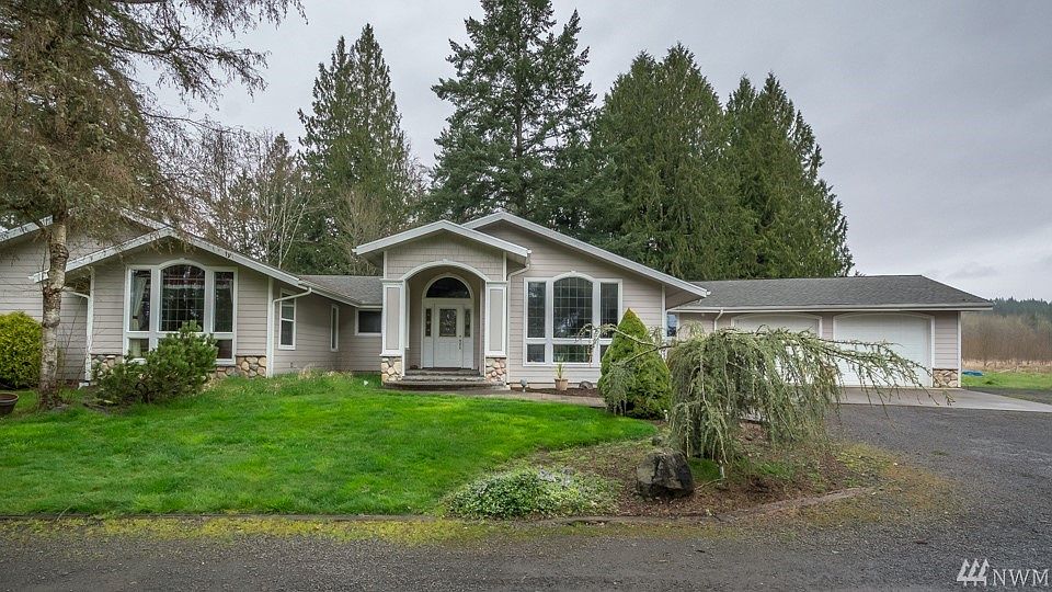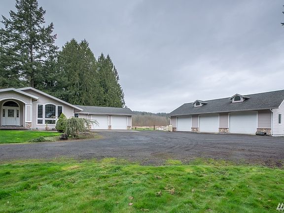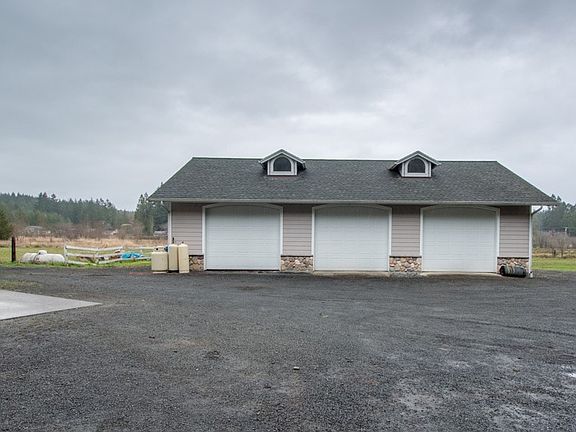 Large 2700 +/- sq ft rambler on 4.3 acres! Property features-3 bay shop w/ lofted storage and office, 2 stall barn + tack room, creek, and mature landscaping w/ in ground sprinklers. Home features- stone exterior accents, slated entry w/ wall fountain, hard wired audio, granite tiled counters, European maple cabinets, maple hardwood floors in kitchen, wood stove, large main bath w/ Mt St Helens marble shower, large master bed w/ office area, jetted master tub and walk in shower. A must see!